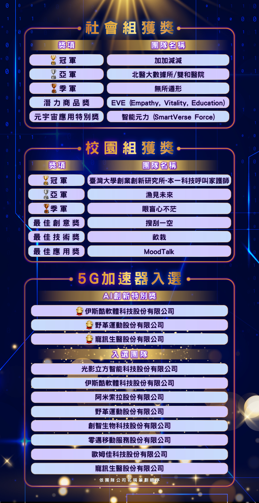 決賽入圍通知已以電子信件及電話通知入圍團隊主要聯絡人,如有任何不清楚之處,請與活動客服聯繫 02-2325-7188#987。